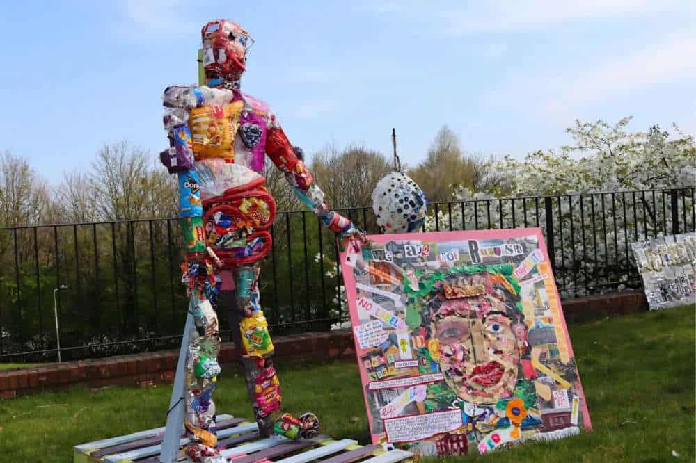 The project embraced circular economy principles, with students repurposing discarded materials and taking part in local litter picks to emphasise the connection between environmental responsibility and social justice.