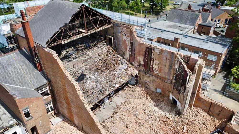 Erewash Borough Council officials have released aerial photographs showing how the site of the former Galaxy Row cinema in Long Eaton looks now that demolition work is underway, with around 250,000 bricks set to be reclaimed for future construction projects.