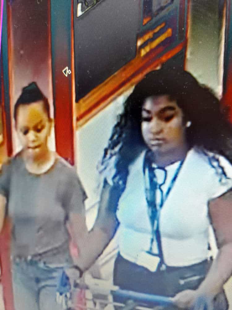 The two women pictured may be able to assist with inquiries into the recent incidents. One was wearing a grey t-shirt and jeans and had her hair tied up on the back of her head, whilst the other had long dark hair and was wearing a white t-shirt with lines down each shoulder, dark trousers or jeans, and was seen on CCTV pushing a shopping trolley, but also wearing a lanyard and identity card.