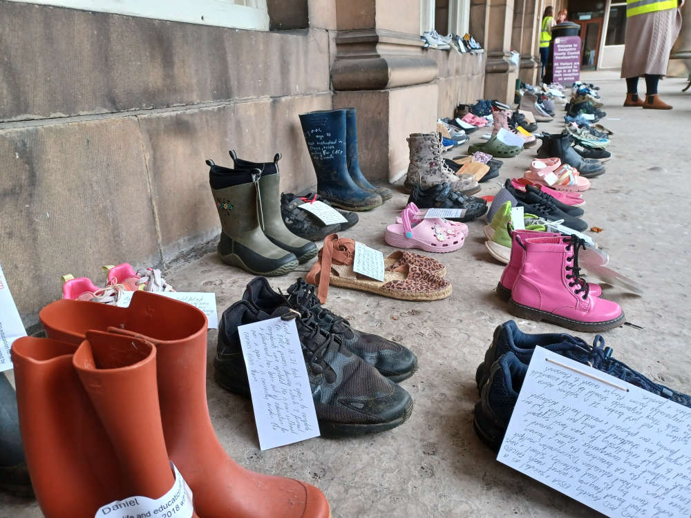Over 100 pairs of shoes form emotive protest outside Derbyshire County Council HQ