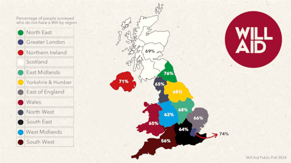 Will Aid’s poll, which surveyed more than 2,000 people across the country, found 53% in the region haven’t made a Will, and 15% admitted theirs did not reflect their current wishes.
