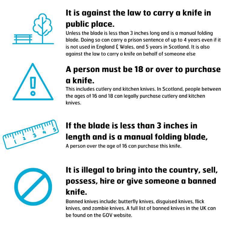Self defence or self protection are NOT valid reasons for carrying a knife or bladed article.