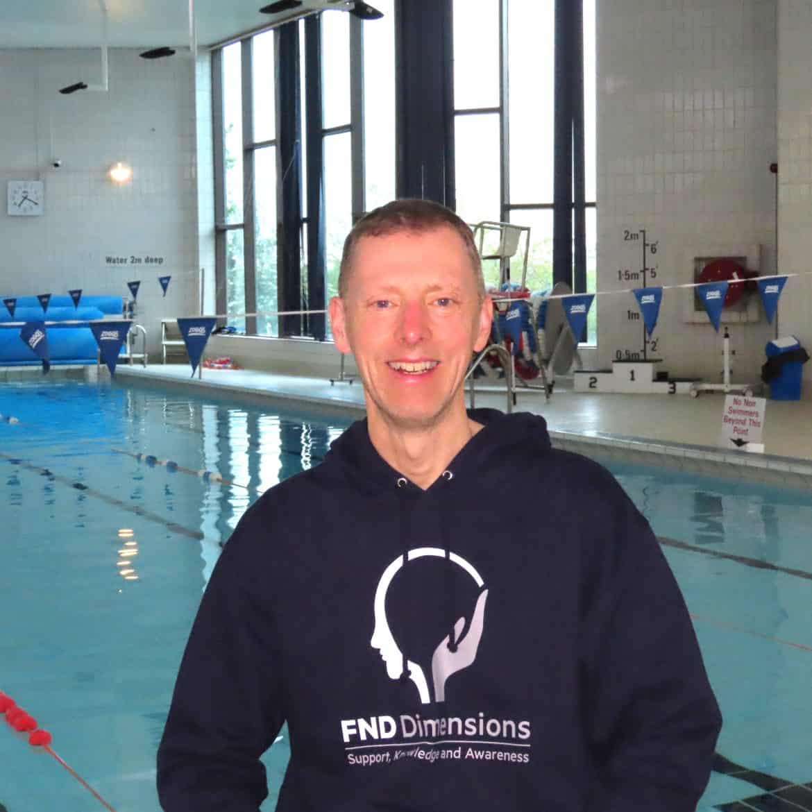 It is all to raise awareness and funding for FND Dimensions which supports people with Functional Neurological Disorder. Steve is swimming 1 mile a day for 100 days consecutively.